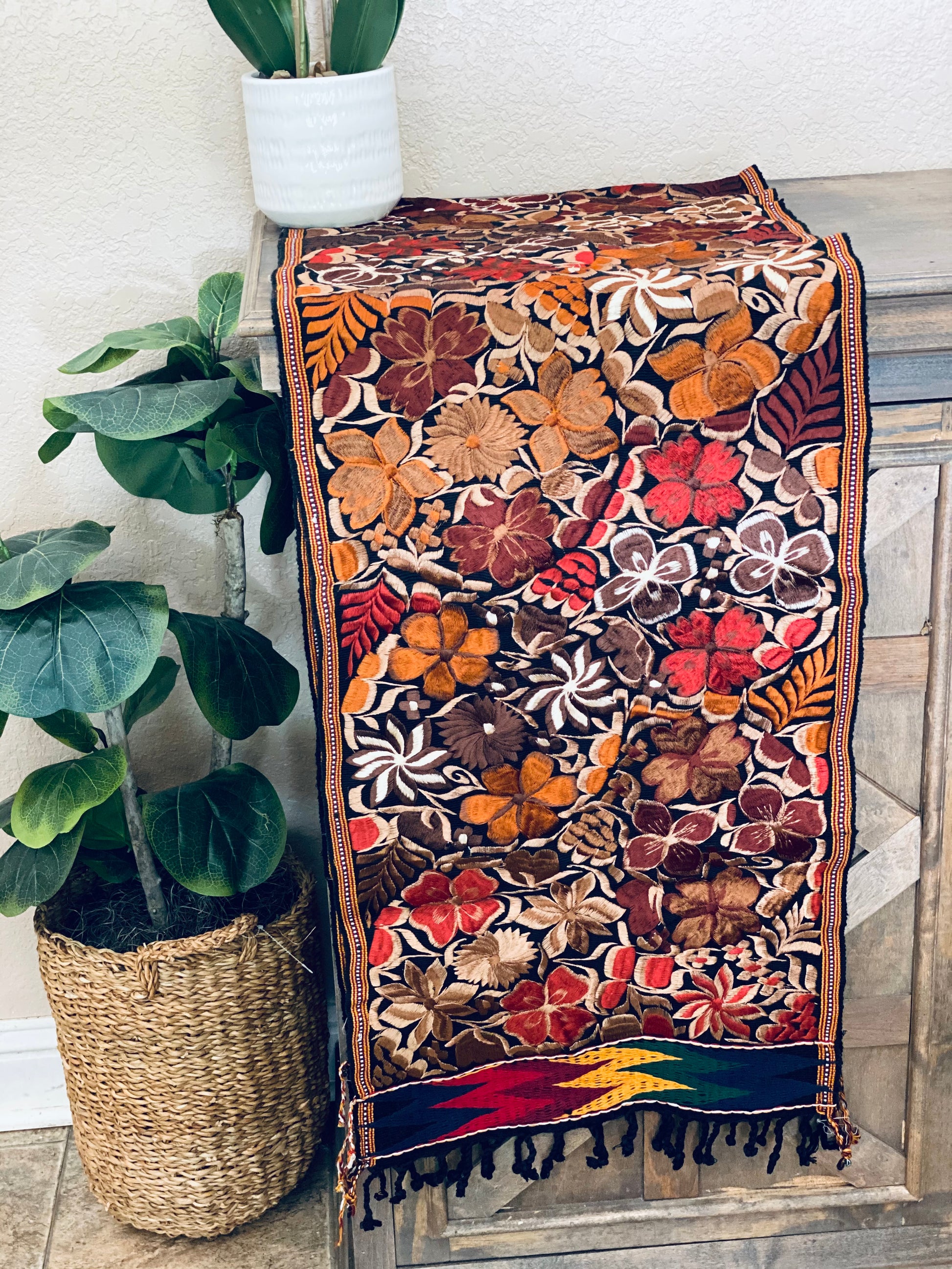 Las Flores Table Runner~ Bed Runner Black/multicolor brown