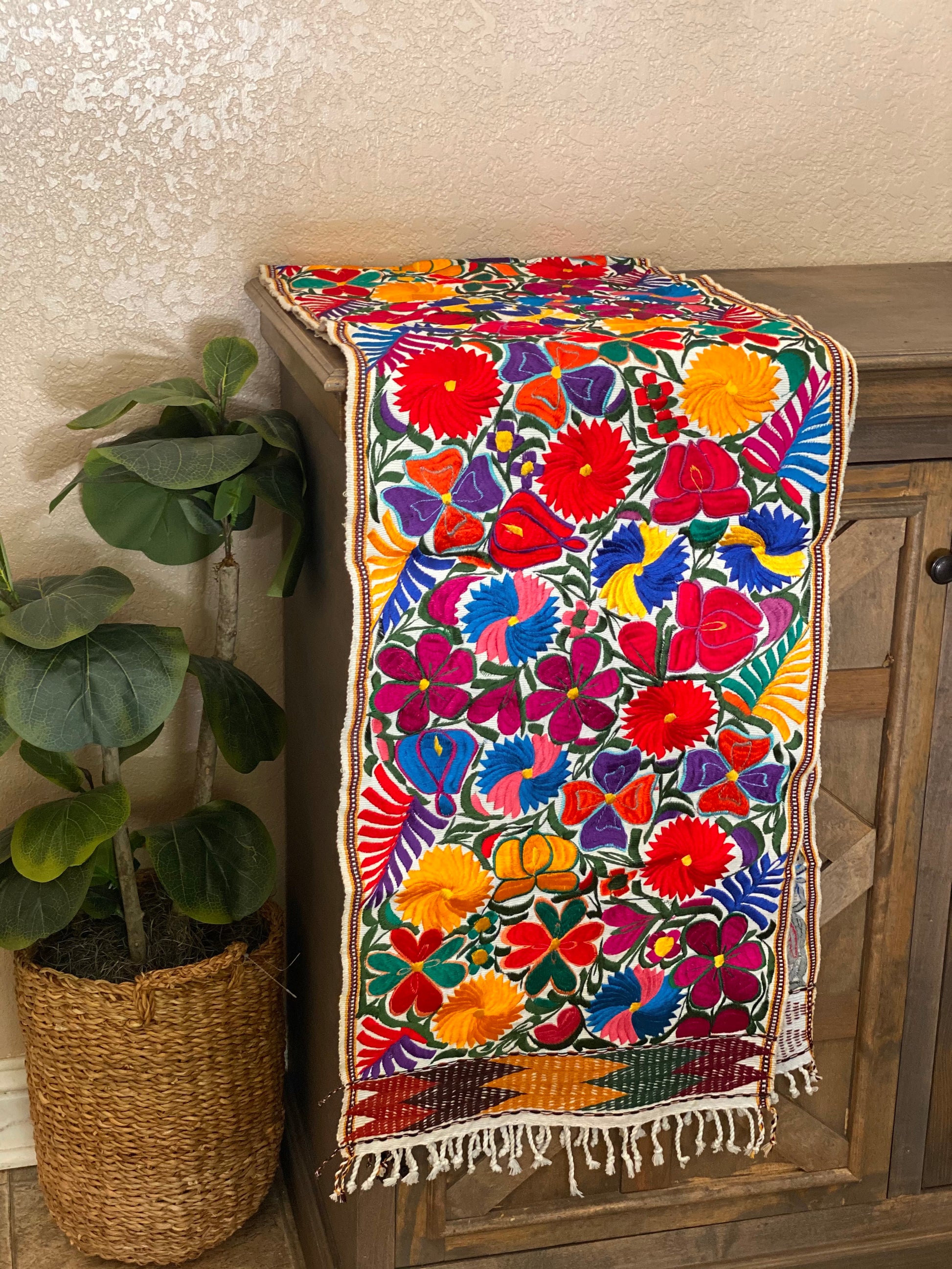 Las Flores Table Runner~ Bed Runner White/multicolor