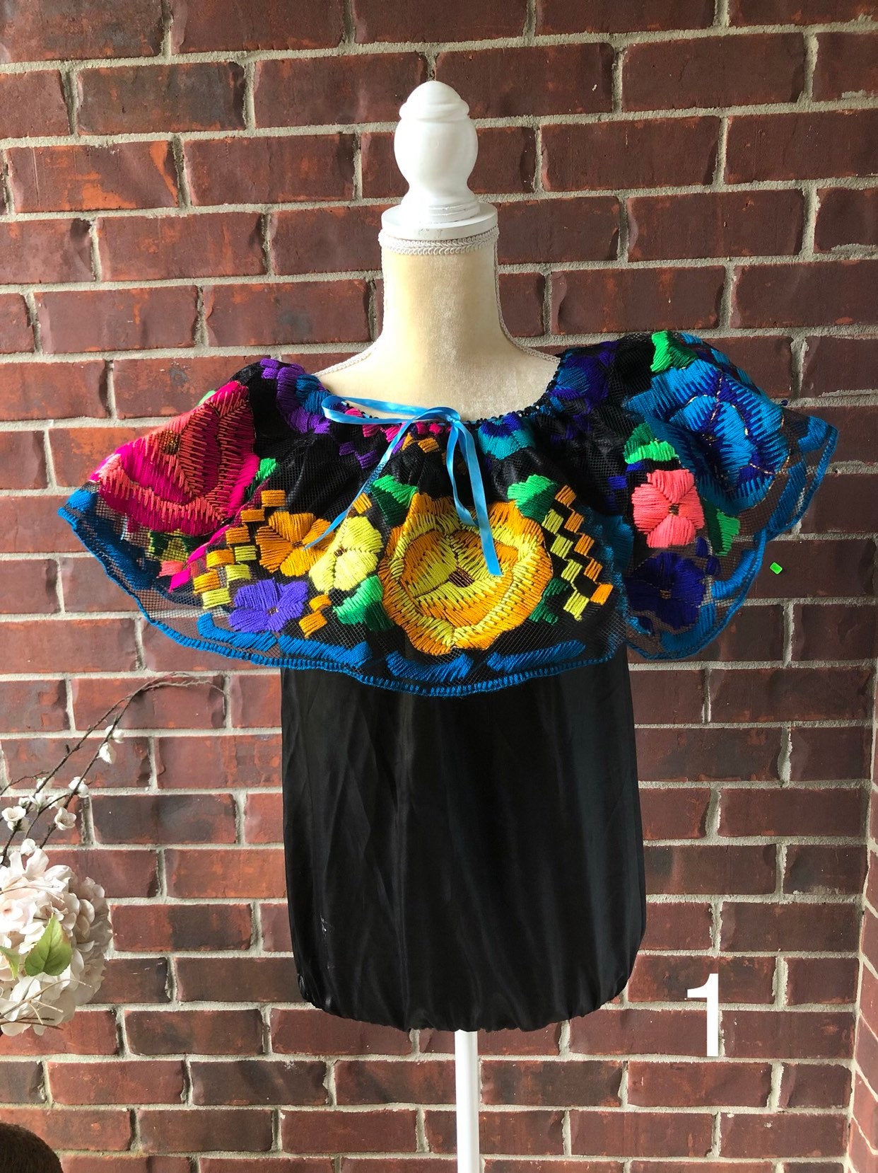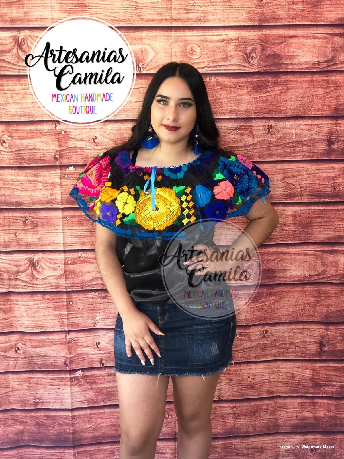 S-M Chiapas Top, Mexican Chiapaneca Blouse, Fiesta Blouse, Cinco De Mayo Top, Off shoulders Mexican Blouse, S-M